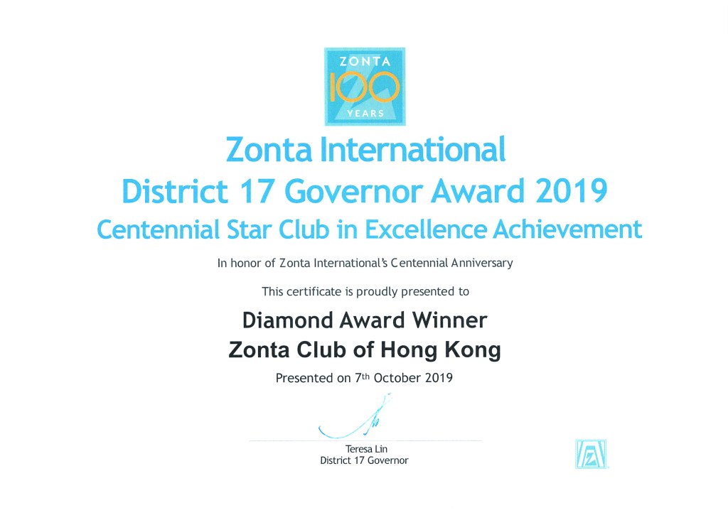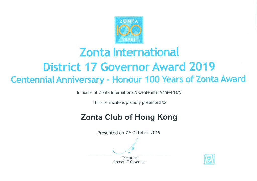 District 17 District Governor Award Centennial Anniversary – Honor 100 Years of Zonta Award