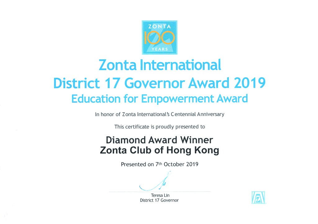 DIAMOND award for nominating candidates for all Zonta education scholarships and awards and organising programs that empower women through education.