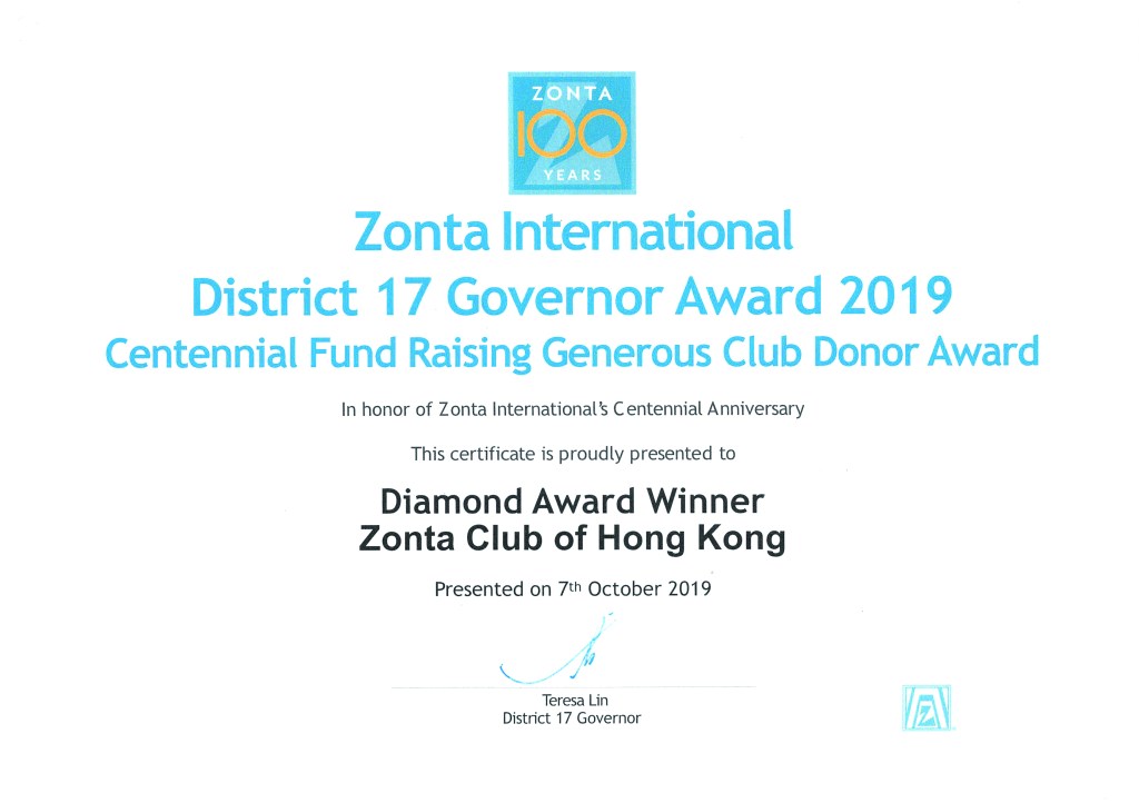 DIAMOND award for outstanding achievement in every aspect measured Service, Advocacy, Education, Leadership, Development, Centennial Anniversary PR, Memberships, ZIF donations, Z & Golden Z.