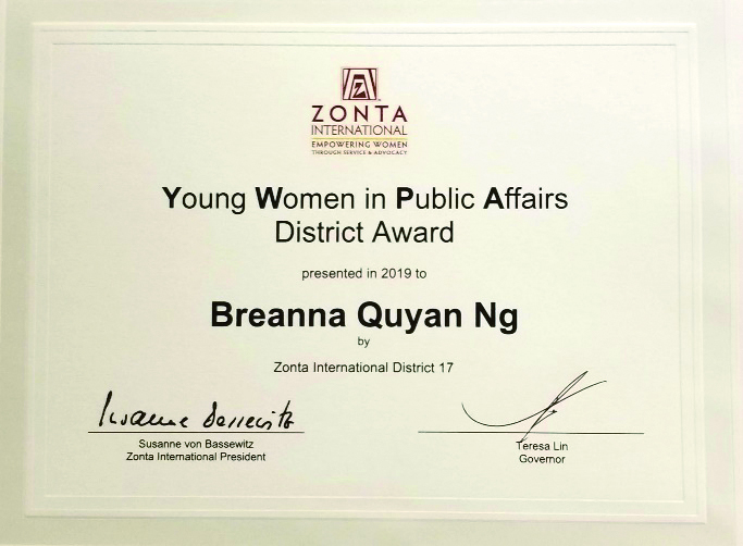 Zonta International Young Women in Public Affairs Award 2019